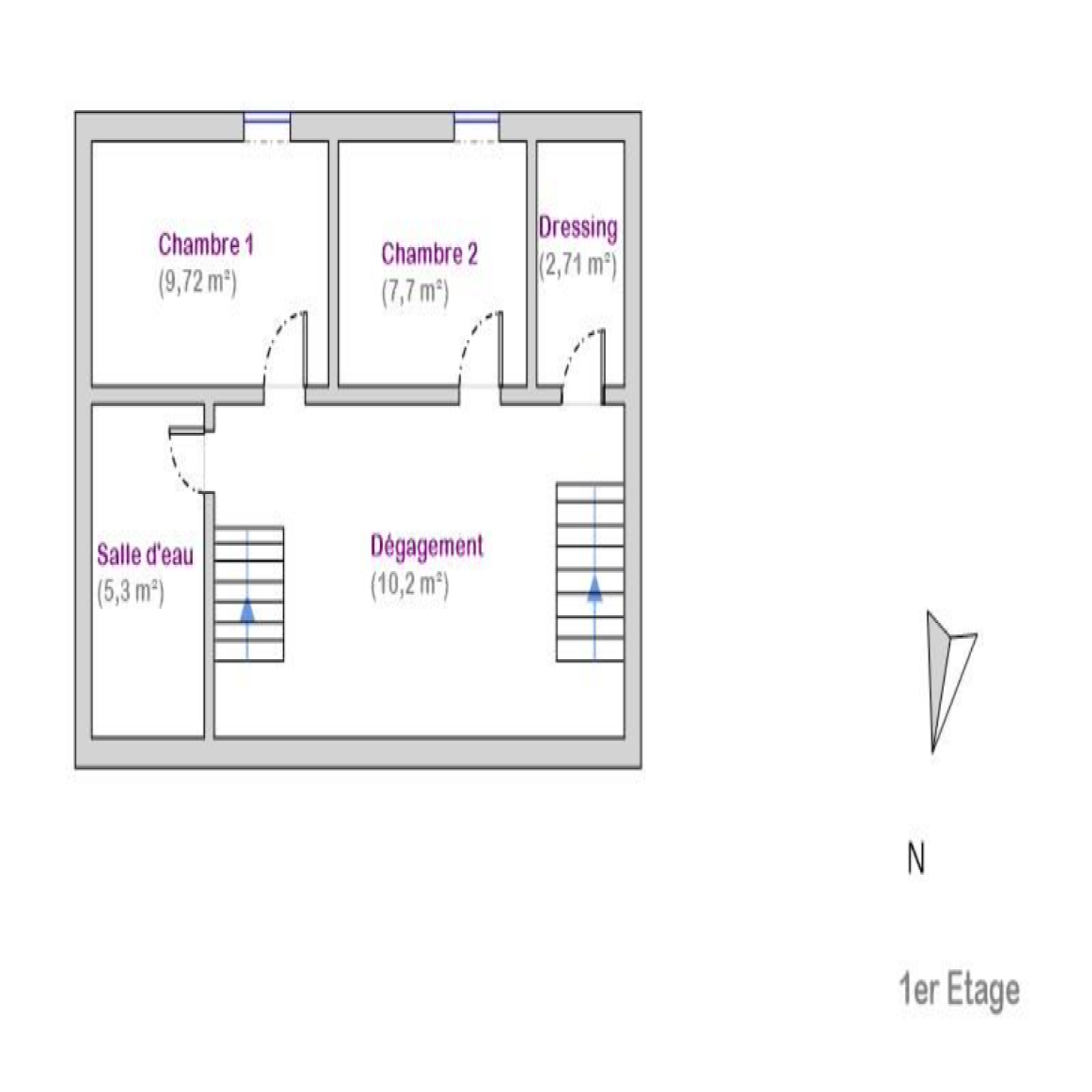 A l'étage: palier desservant 2 chambres, un dressing, une salle d'eau avec WC