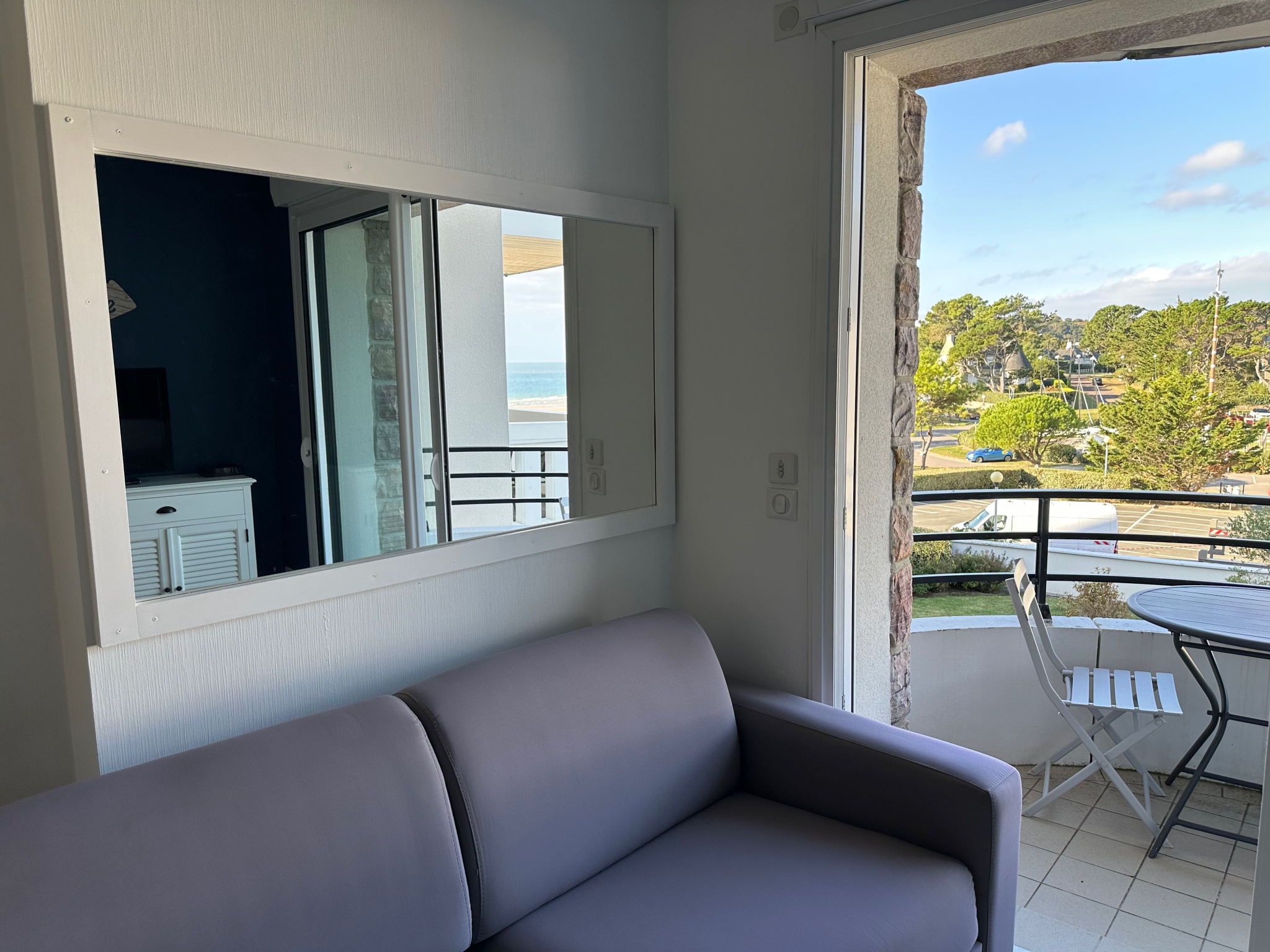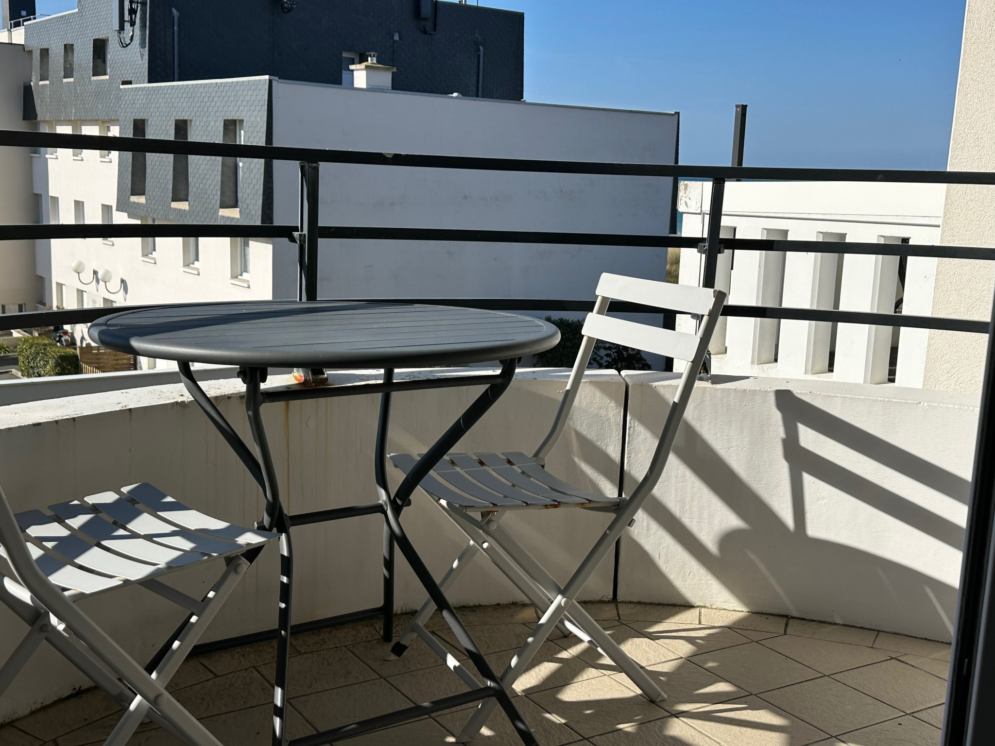 appartement comprenant une entrée, un salon séjour ouvrant sur un balcon avec vue sur mer, cuisine aménagée et équipée ouverte, une chambre avec placards, une salle de bains, wc indépendant