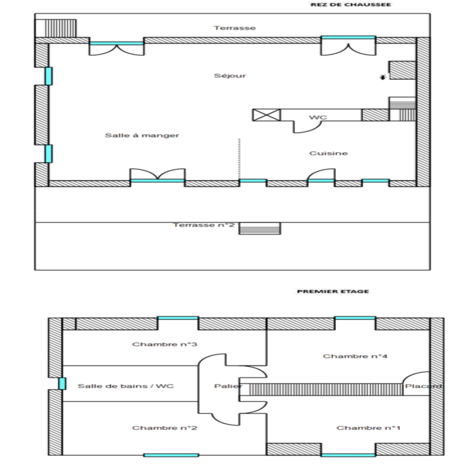 rez-de-chaussée: séjour salle à manger avec cheminée, cuisine indépendante, wc