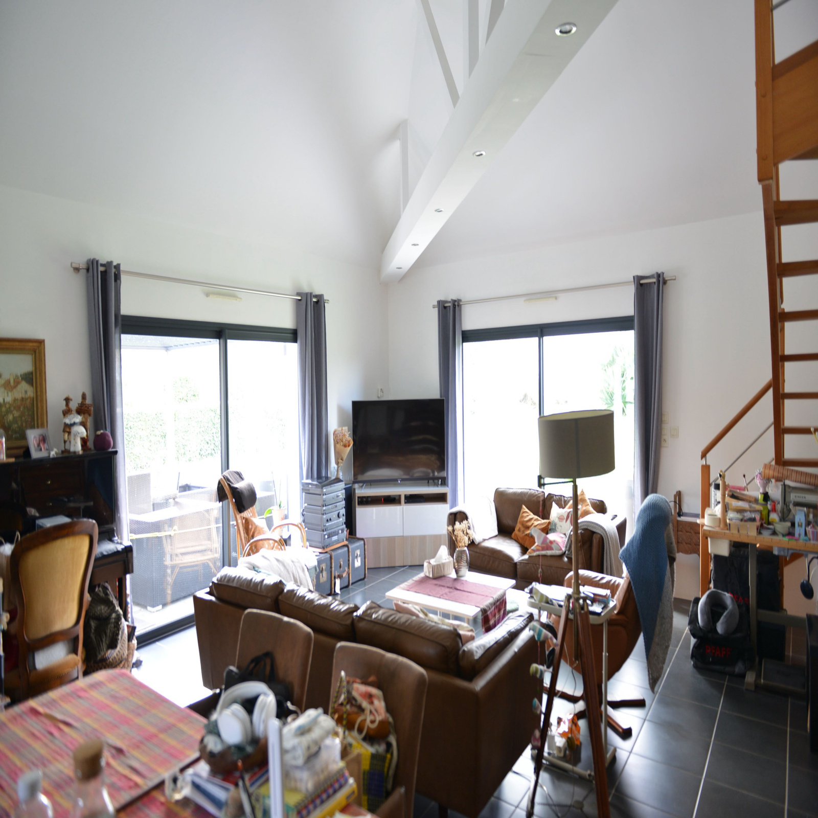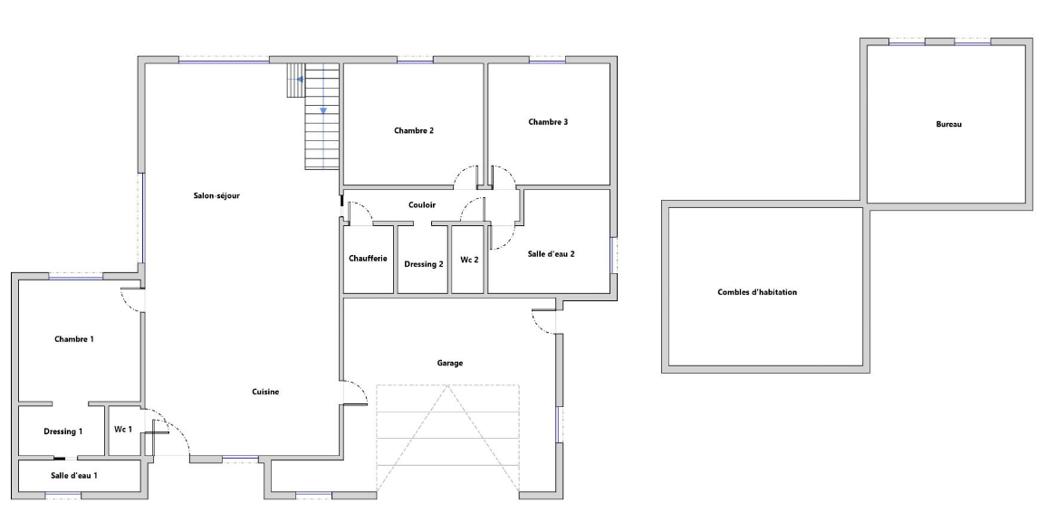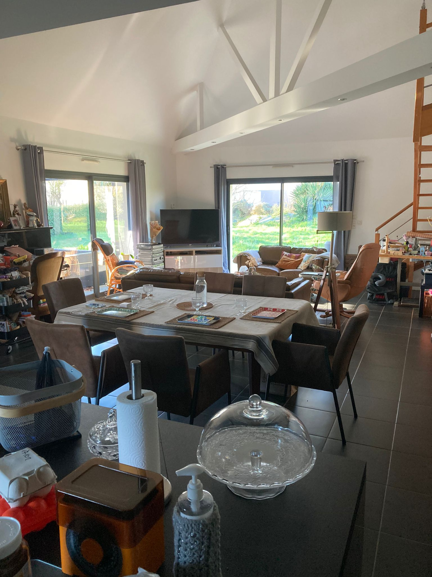 maison récente offrant 3 chambres de plain-pied et une mezzanine au-dessus de la pièce de vie (pièce de vie d'environ 60m2)