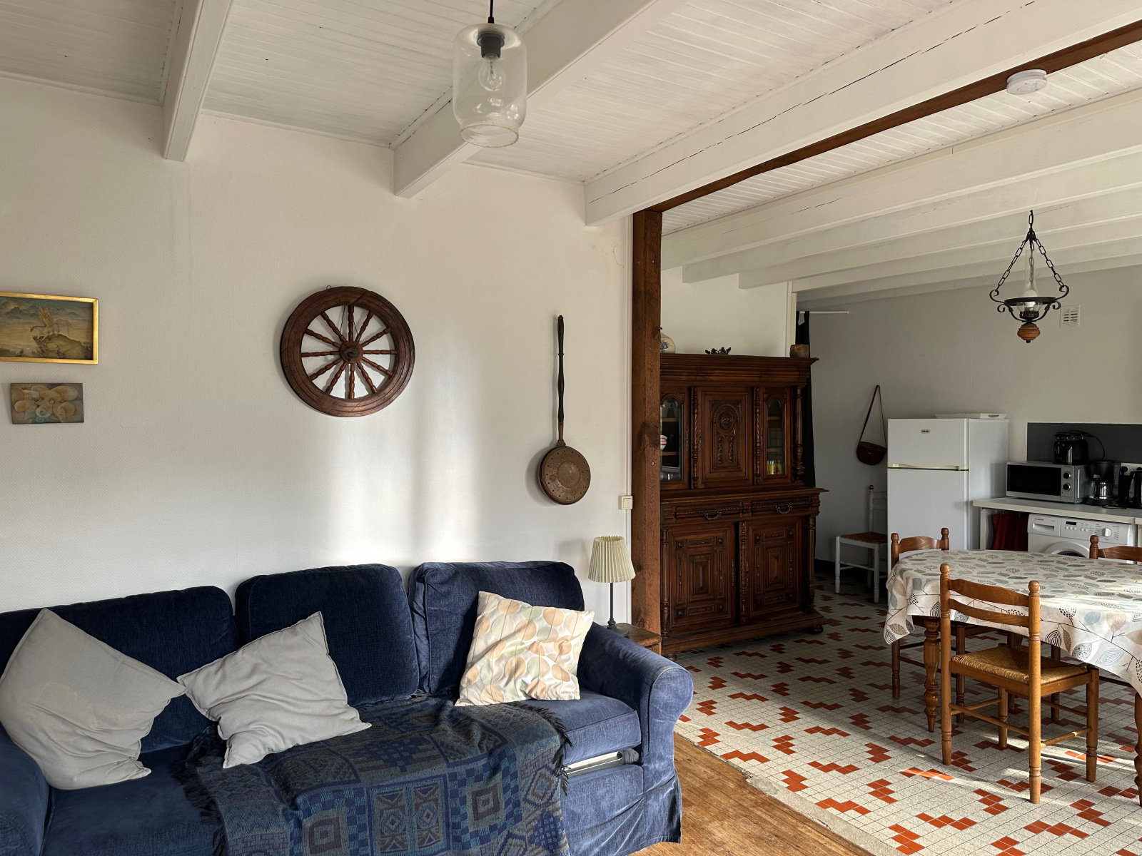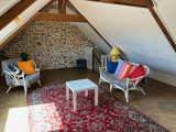 L’agence EMERAUDE IMMOBILIER vous propose cette maison en pierres mitoyenne offrant au rez-de-chaussée: salon séjour, cuisine ouverte, salle de bains, wc, rangement