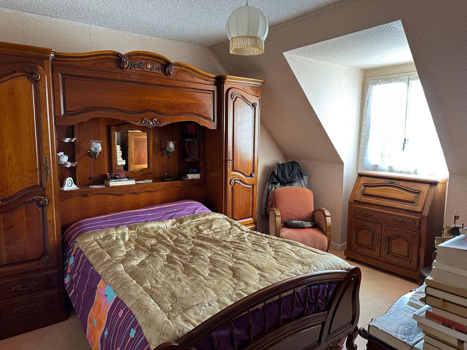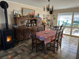 D'une surface habitable d'environ 92m2, cette maison en bon état général maison offrant au rez-de-chaussée: entrée, salon séjour avec poêle, véranda, cuisine aménagée et équipée indépendante, wc, cellier