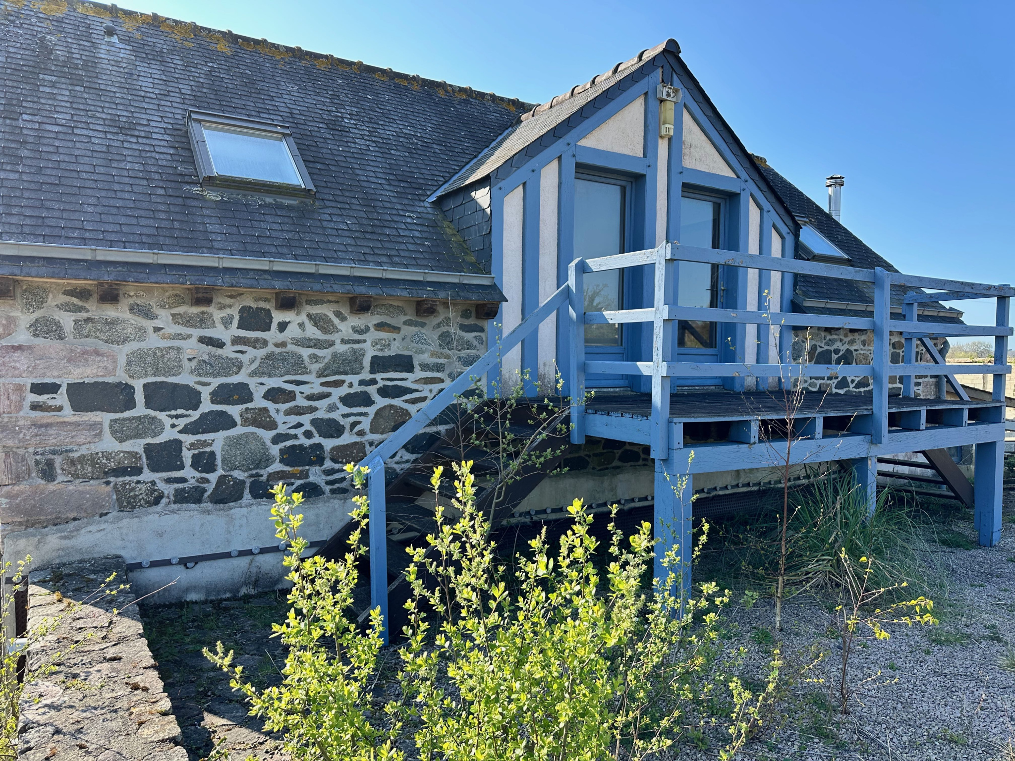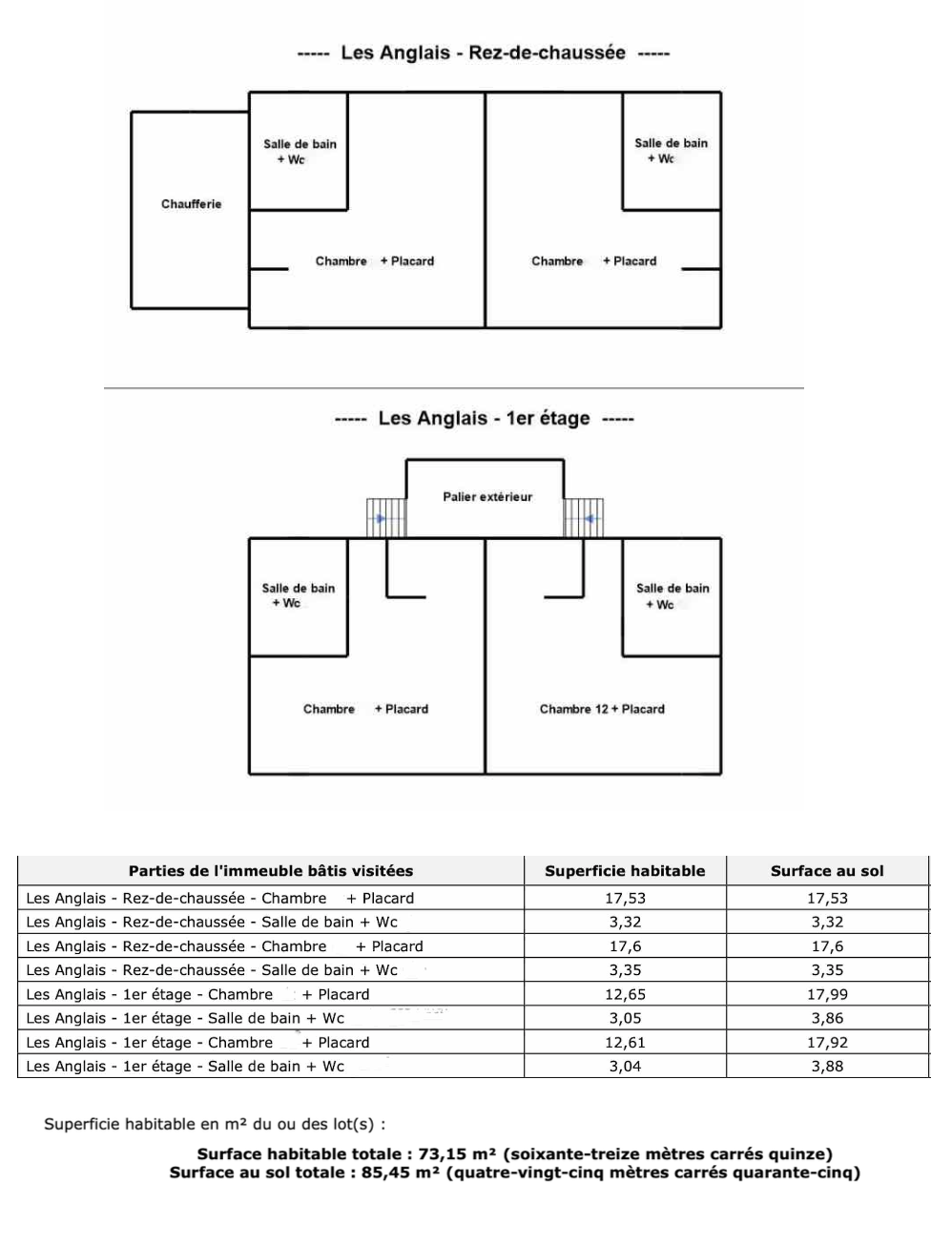 A l'étage (sur dalle béton) accessible par terrasse sur l'arrière: 2 chambres (chacune avec sa salle de bains wc)