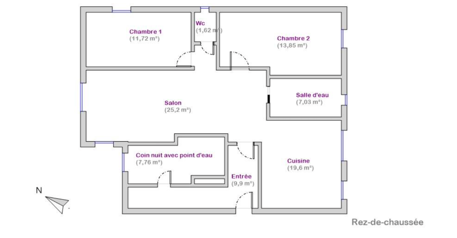 D'une surface habitable d'environ 97m2, cette maison en très bon état général offre un salon séjour ouvrant sur une terrasse exposée SUD, 2 chambres, salle d'eau avec wc, un second wc indépendant, buanderie.