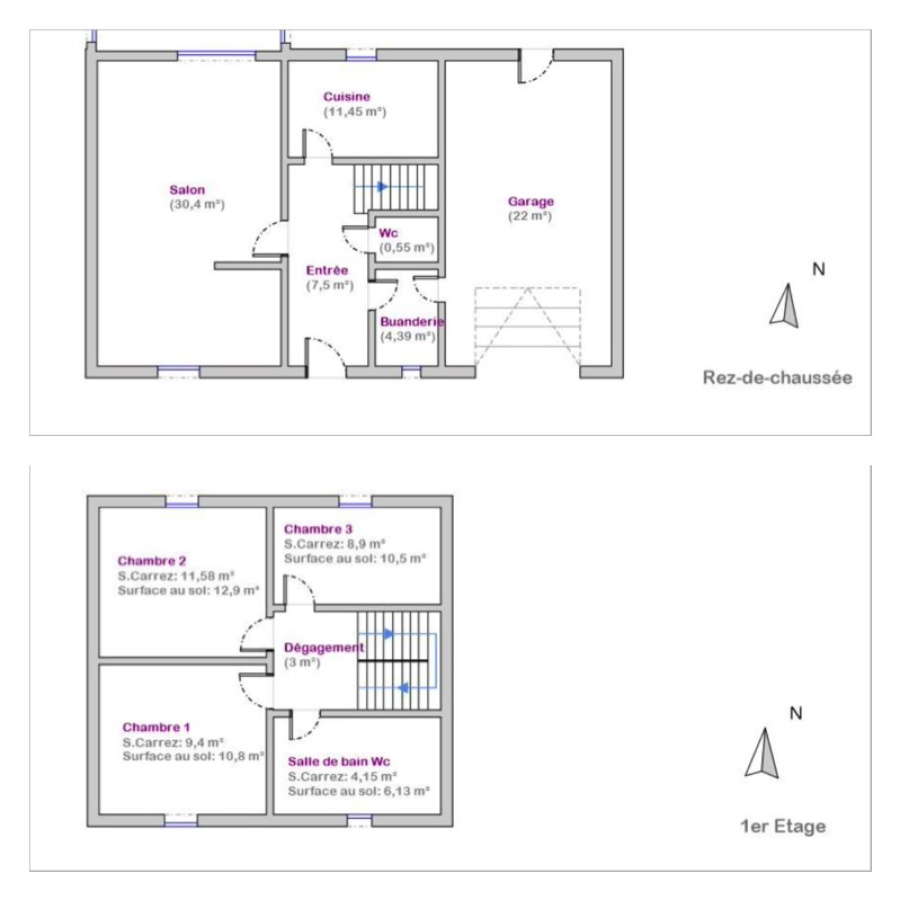 Maison 4 pièce(s) 3 chambre(s) 91.32 m²